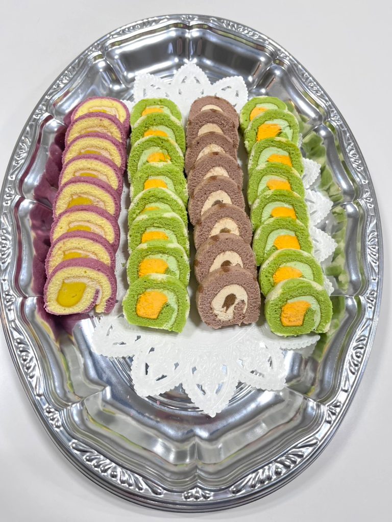 プチデザートバイキングでは、ロールケーキを3種類ご用意し、一人2個ずつ選んで頂きました。
